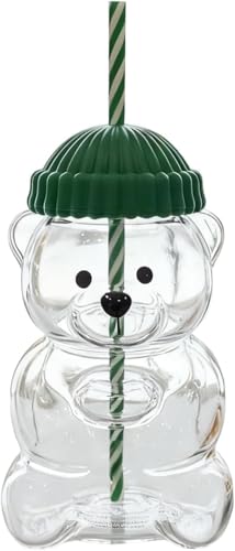 Caikbms Bears Straw Glass Cups, Christmas Honey Bear Coffee Cup with Lids, 20 Oz Cute Mugs Holiday Sippy Cups Juice Milk Cocktail Drinks Glassware Xmas Birthday Gifts 1pc
