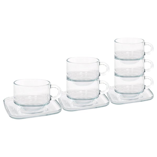 12pc 350ml Cozy Stacking Glass Coffee Cups & Saucers Set
