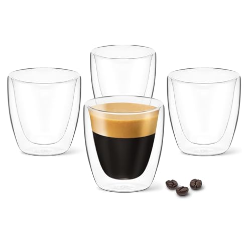 DLux Espresso Coffee Cups, Double Wall Clear Glass, Insulated Borosilicate Glassware Tea Cup, 4 pcs, 90 ml