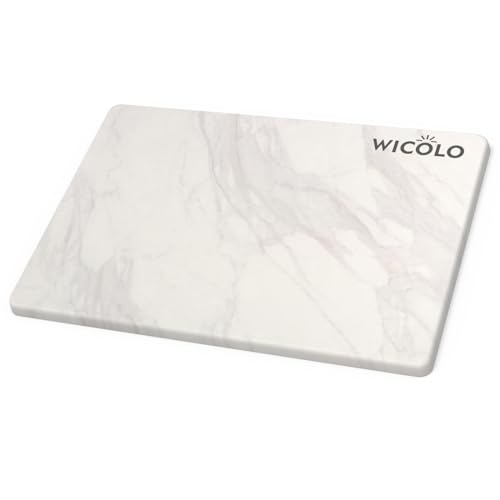 WICOLO Stone Dish Drying Mats, Absorbent Drainer Tableware Mat,Bar Coasters,Quick Drying Pads for Kitchen Counter Sink,Coffee Machine,Cups Dishes Bottles,Glassware Rack(15.8x11.8 Inch, White Marble)