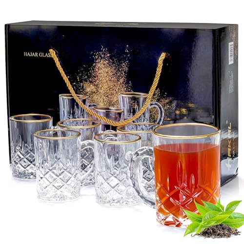 INTIGNIS Elegant Tea Glasses, Drinking Glasses with Handles, 210 ML, Glassware for Hot and Cold Drinks, Clear Cups for Coffee, Espresso, Glass Mugs for Green Tea, Cappuccino Set of 6
