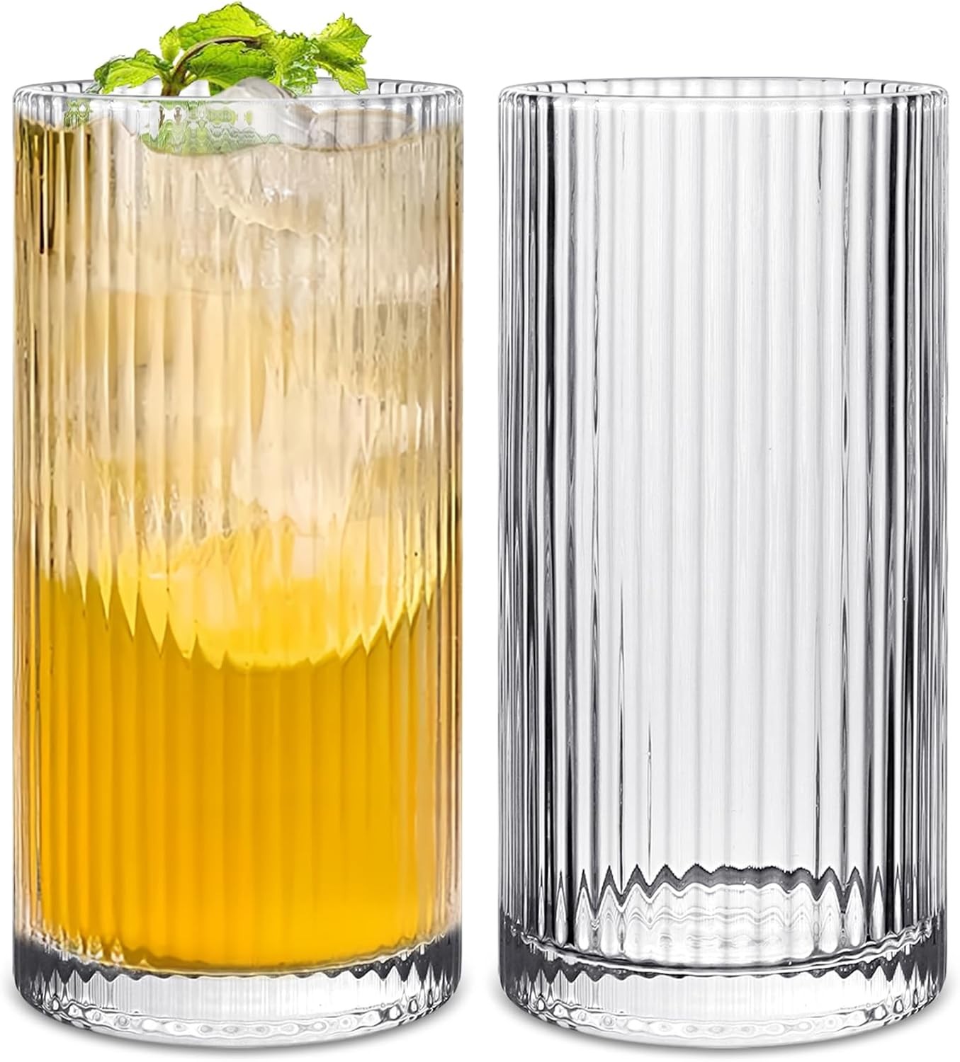 Wieat Highball Glasses, Drinking Ribbed Glassware, Coffee Mug,...