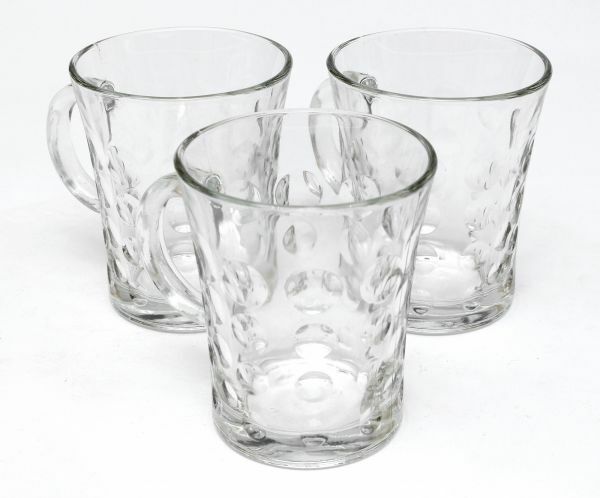 Kandil Bubbly 3 Piece Glass Mug Set Tea Coffee Cappuccino Cup 282ml Glassware