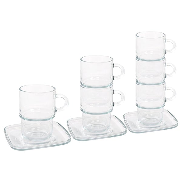 12pc 270ml Cozy Stacking Glass Coffee Cups & Saucer Set