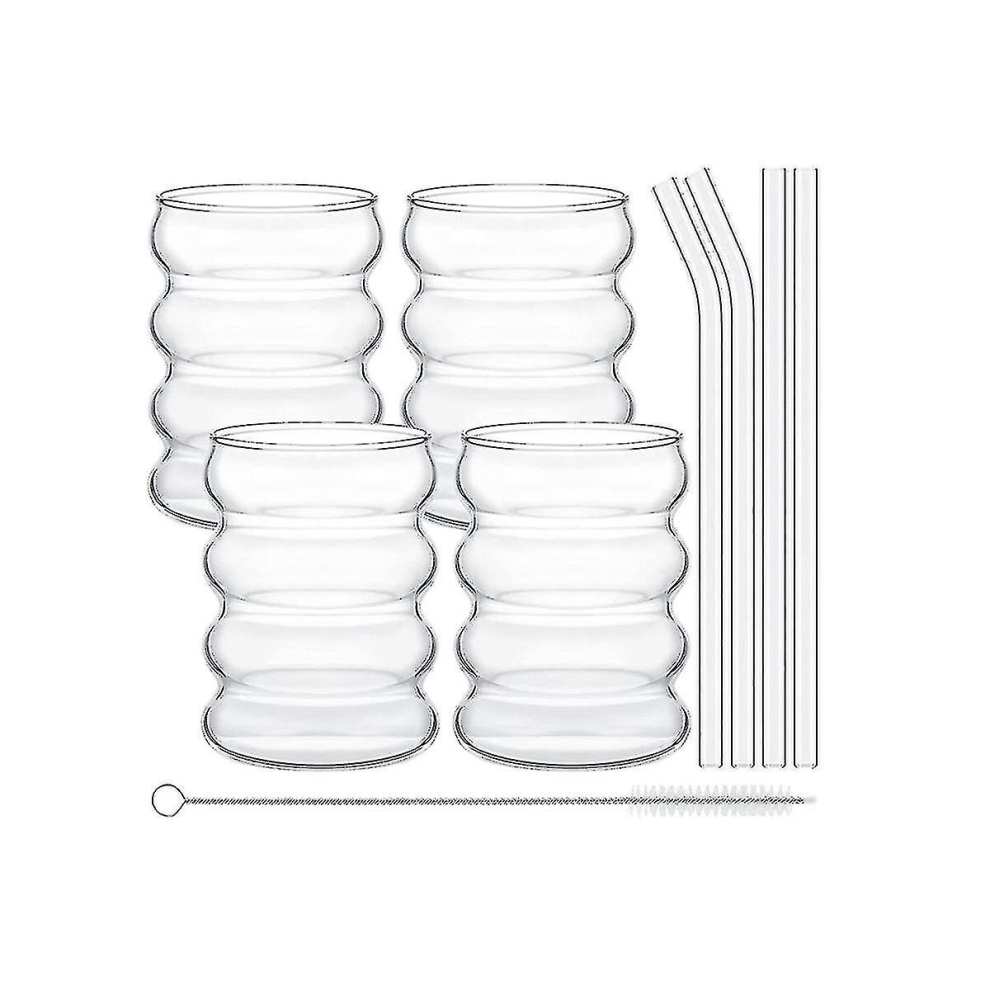 4pack Glasses Cute Ripple Retro Water Glass With Straw Ribbed Glassware Kitchen Coffee Juice Set