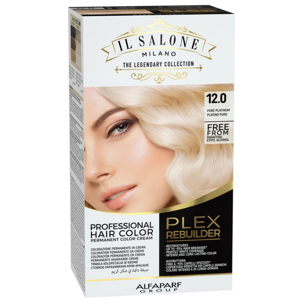 Il Salone Milano Plex Rebuilder Permanent Hair Color Cream - 12.0 Pure Platinum Professional Hair Dye Kit for a Natural Gloss & Glaze - Paraffin