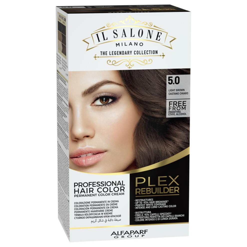 Il Salone Milano Plex Rebuilder Permanent Hair Color Cream - 5.0 Light Brown Professional Hair Dye Kit for a Natural Gloss & Glaze - Paraffin Pa