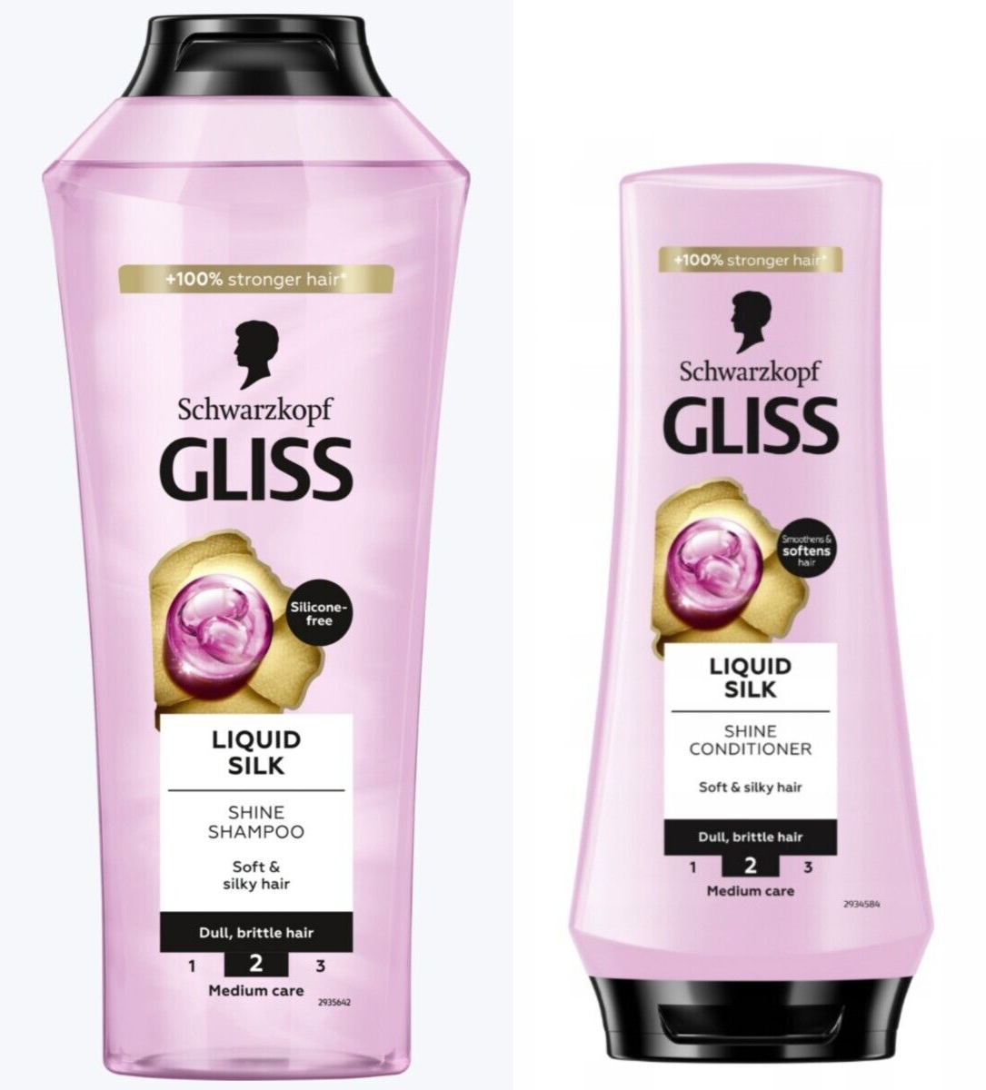 Schwarzkopf Gliss Liquid Silk Shampoo+Conditioner SET For Dull Brittle Hair NEW