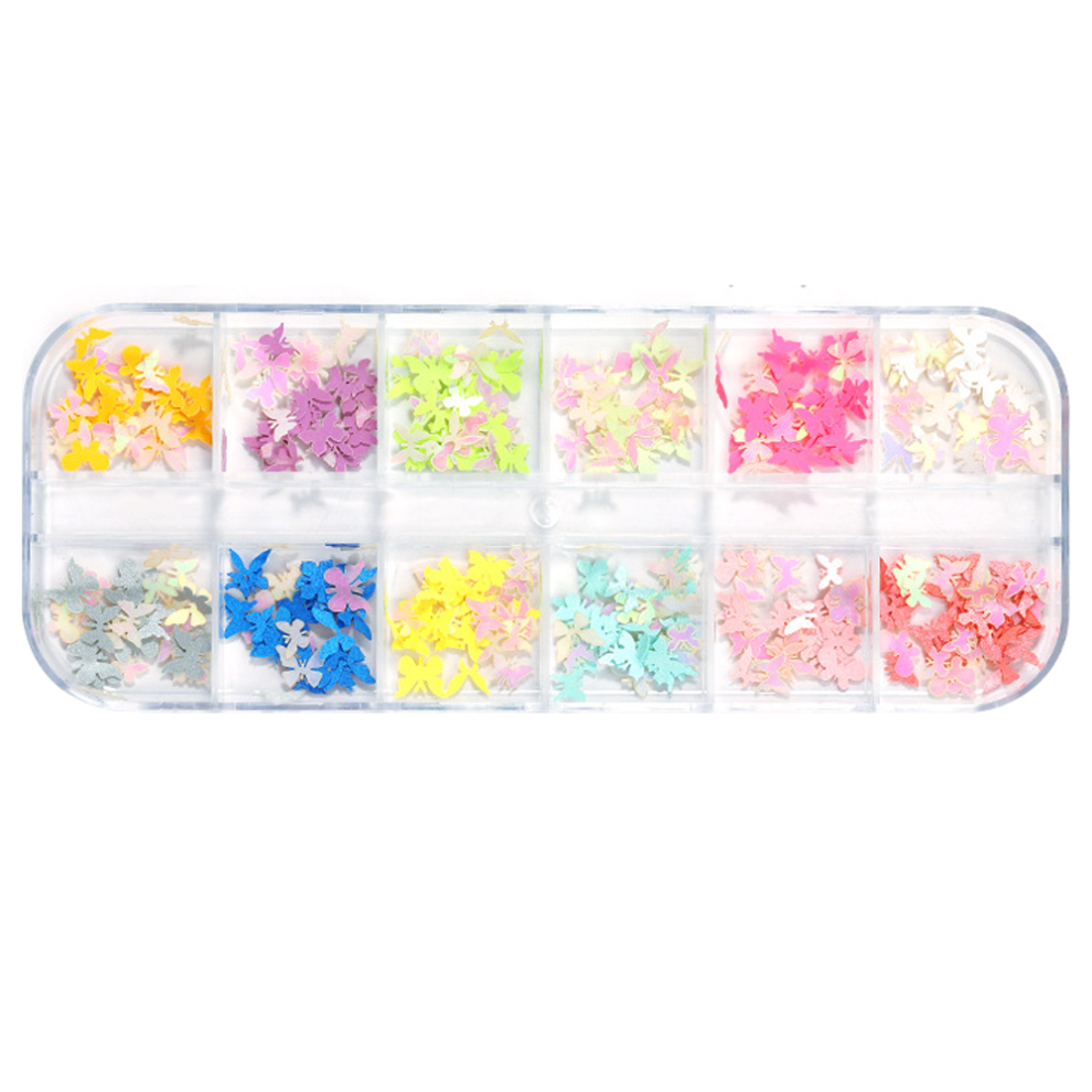 3D Nail Art Accessories Nail Charms Holographic Glitter Flakes for Acrylic Nails Elegant Nail Design with Floral and Butterfly Motifs UV Resin Compati