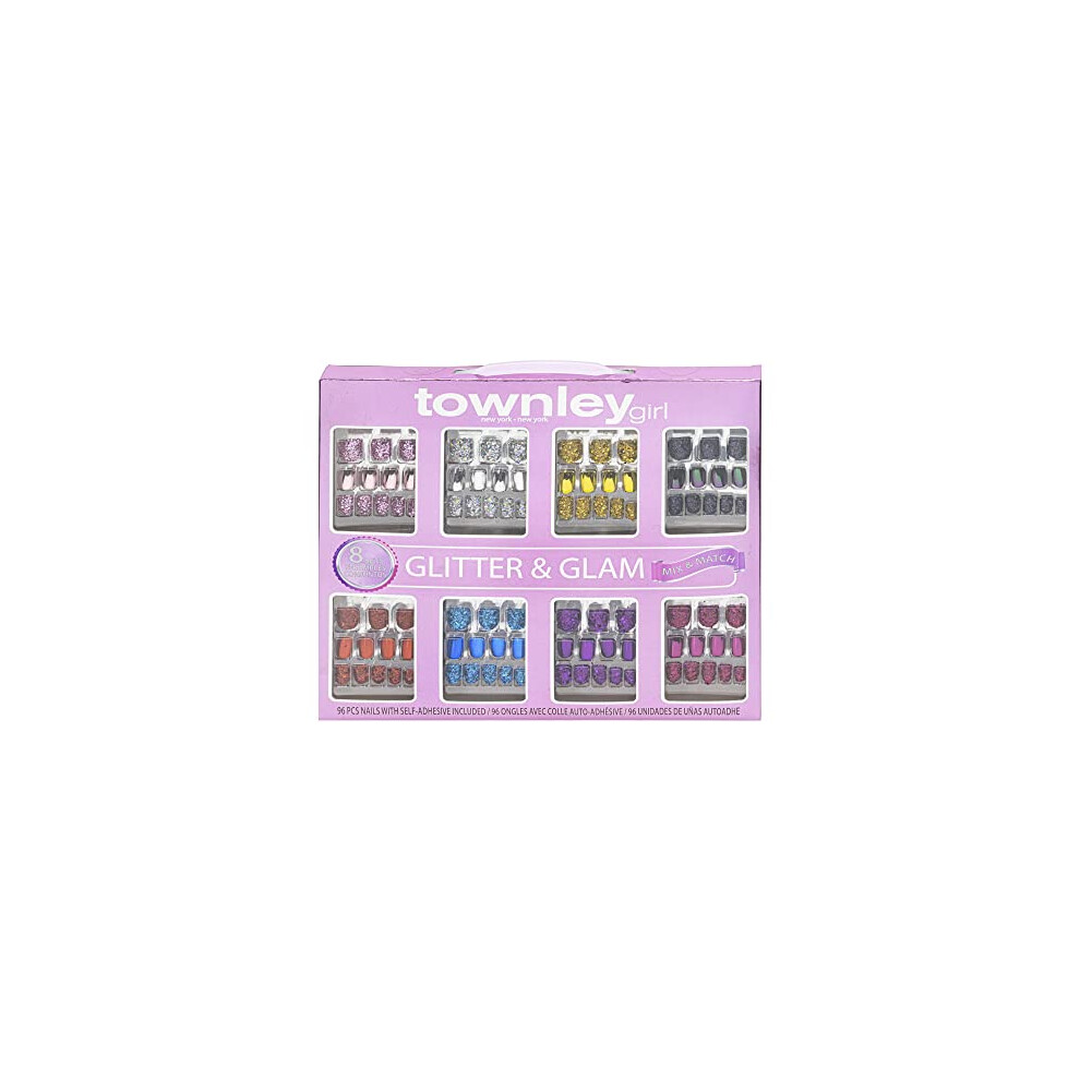 96 Pcs Glitter-Glamup & Metallic Press-On Nails Artificial Fake False Nails Set for Kids with Pre-Glue Full Cover Acrylic Nail Tip Kit, Great for