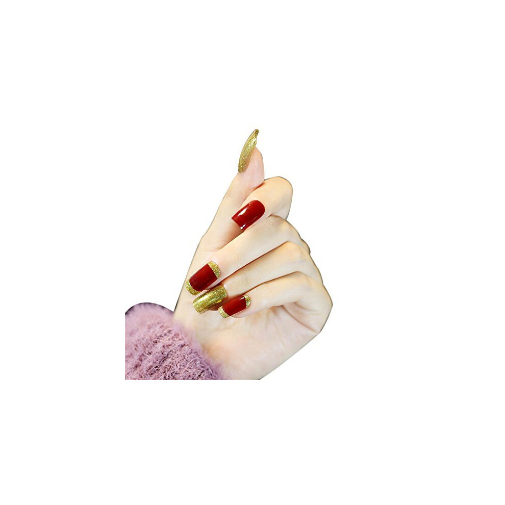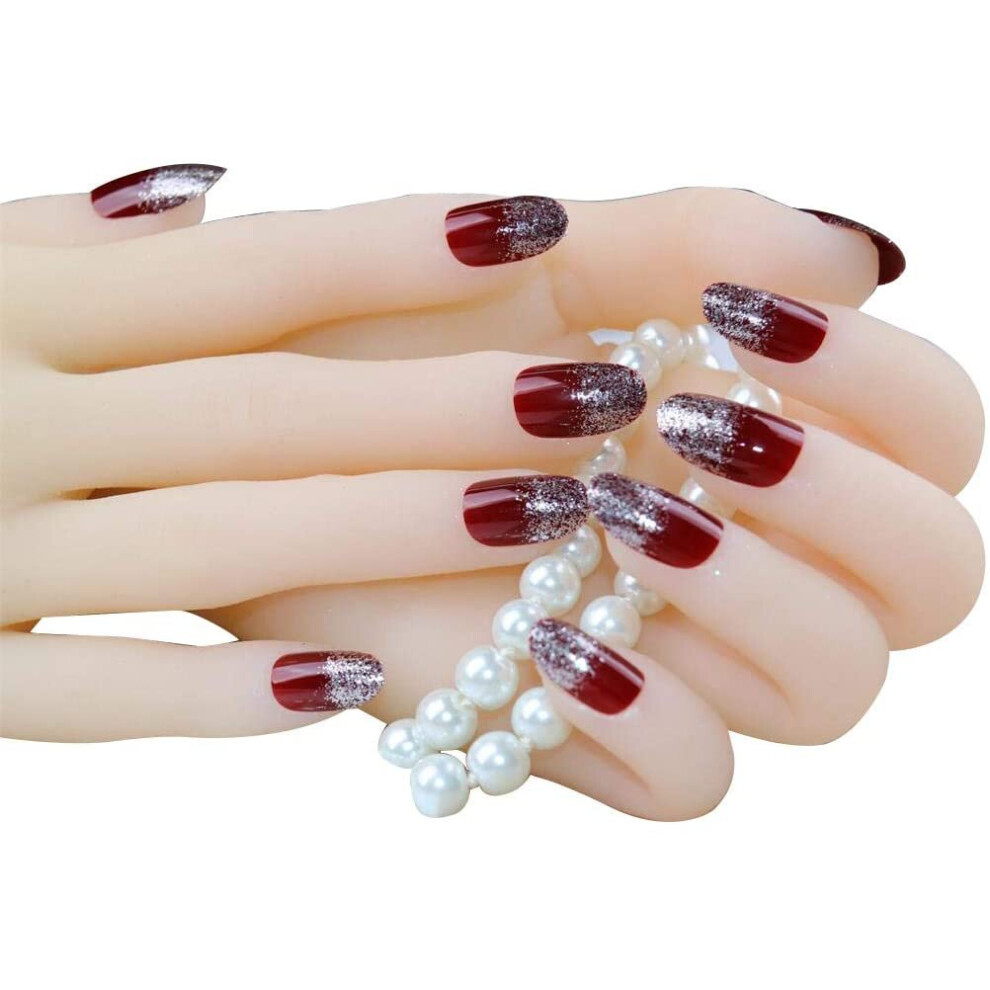 YONAIL 24pcs/set Pretty Wine Red Fake Nails Full Cover Acrylic Glitter Christmas False Nails Press On False Nails Medium Long Design Women Girls Bride