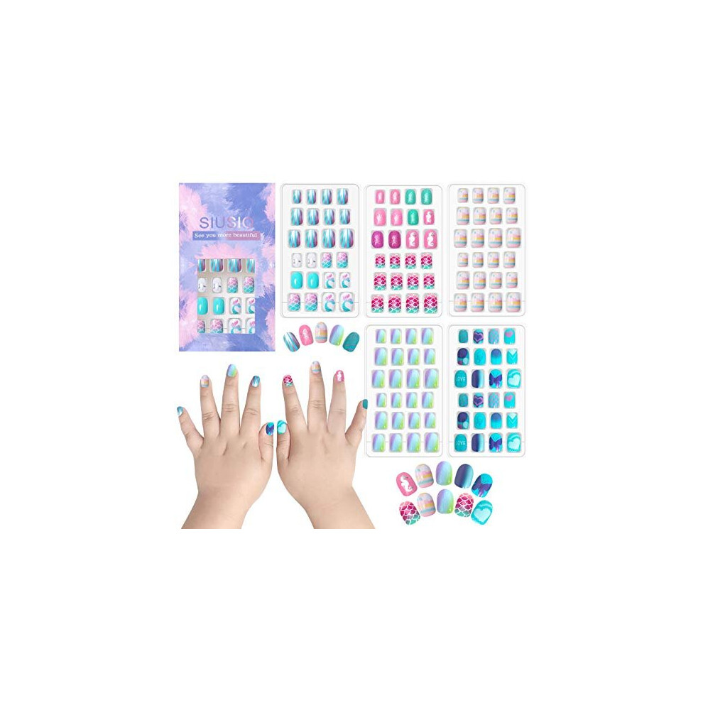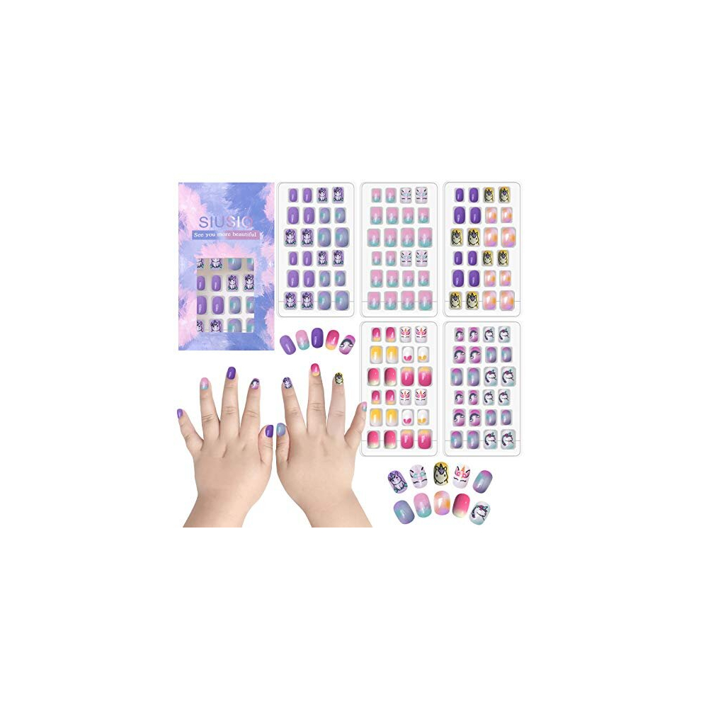 120 Pcs 5 Pack Children Acrylic Fake Nails Press on Pre-glue Full Cover Glitter Gradient Color Short False Nail Art Kits for Kids Little Girls -