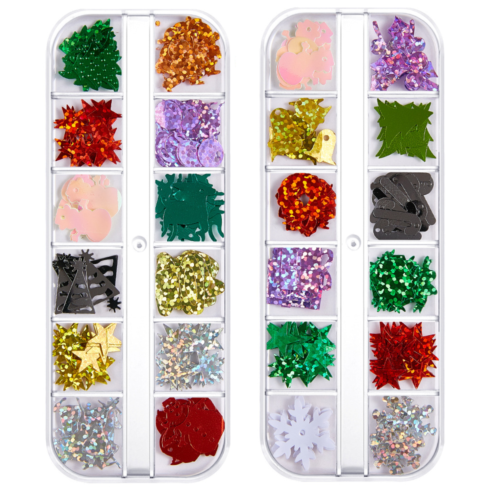 Christmas Nail Art Glitter, Holographic Mixed Winter Snowflake Christmas Tree Star Round Cross Nail Glitter Flakes, Acrylic Nails Decorations, High Qu