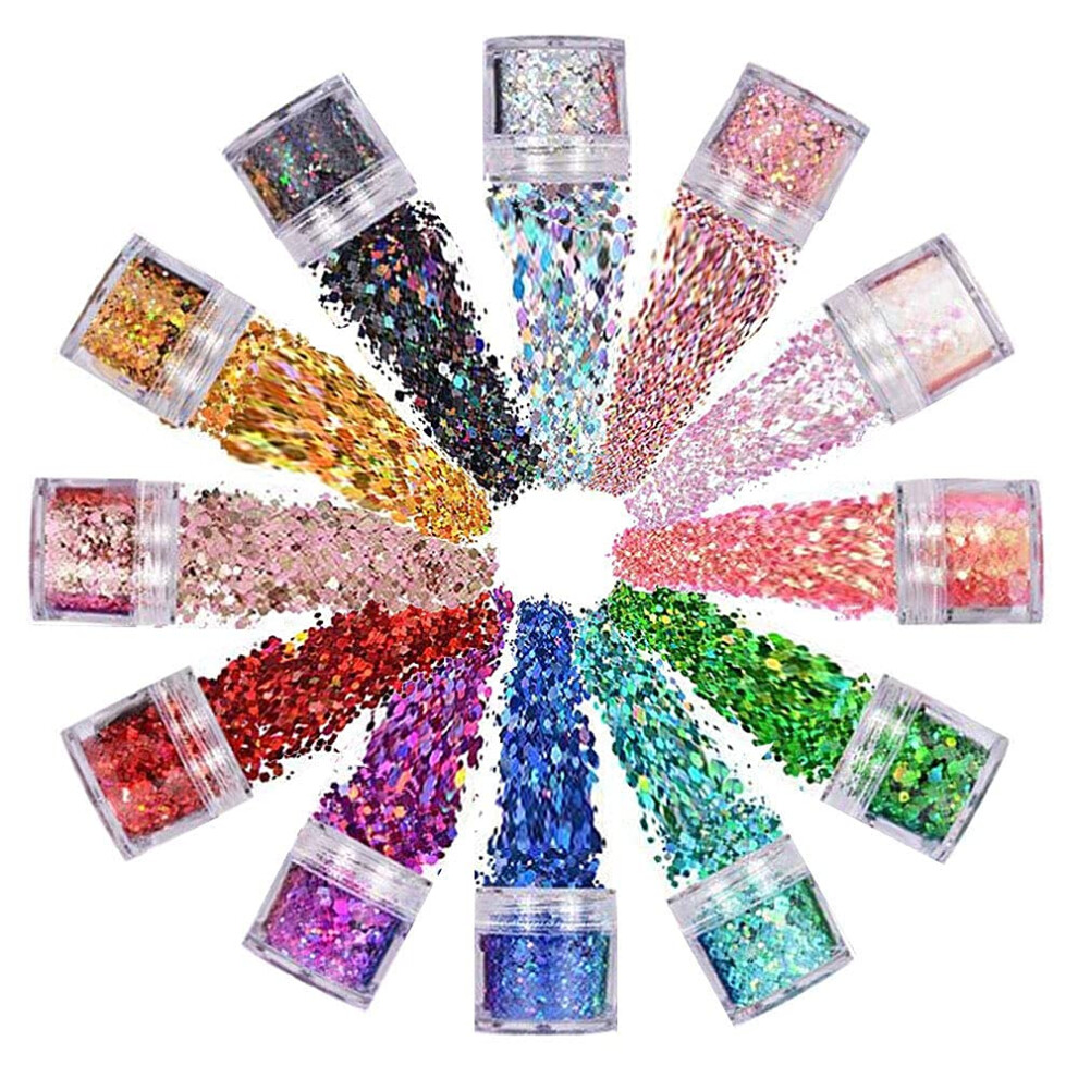 Laza 12 Colors Glitter Nail Art Acrylic Nails Powder Mixed Sequins Iridescent Flakes Ultra-Thin Paillette Sparkles Tips Chunky Box 120g for Face Eyes