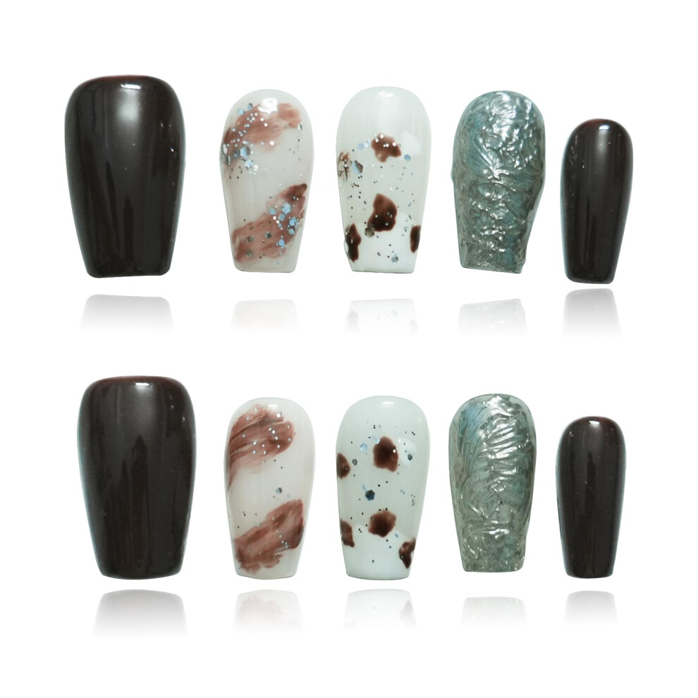 Brown Short Almond Press On Nails Glitter Acrylic Fake Nails Kit 24pcs Reusable for Women