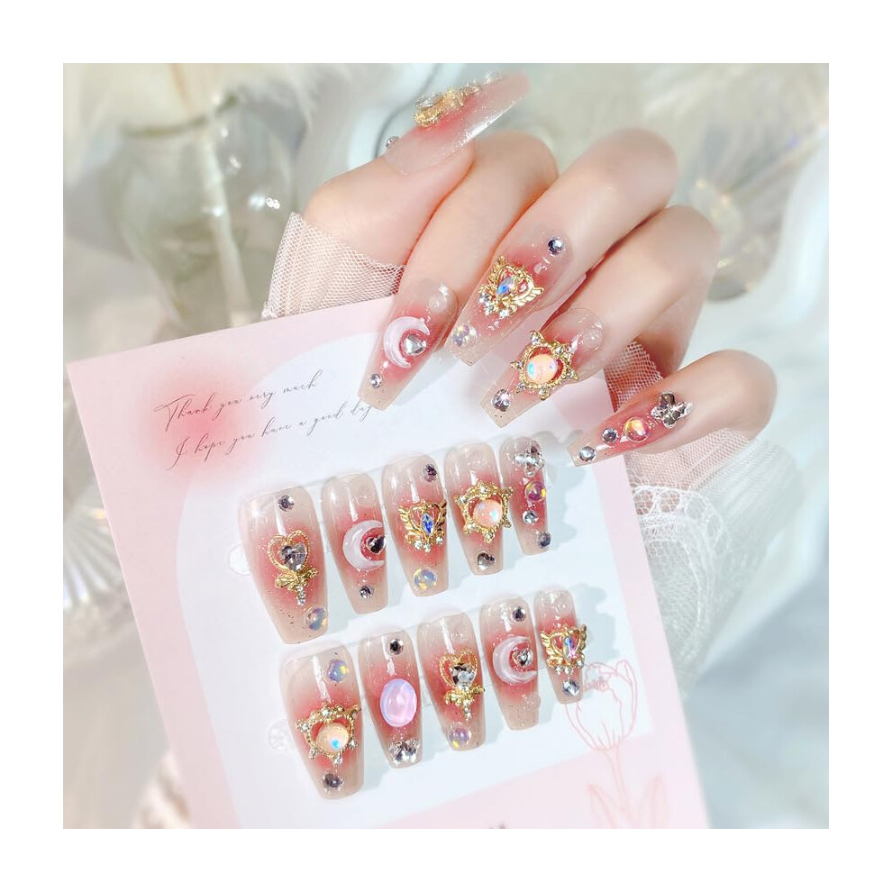 Medium Ballerina Press On Nails with Rhinestones Glitter Acrylic Fake Nails for Weddings and Parties