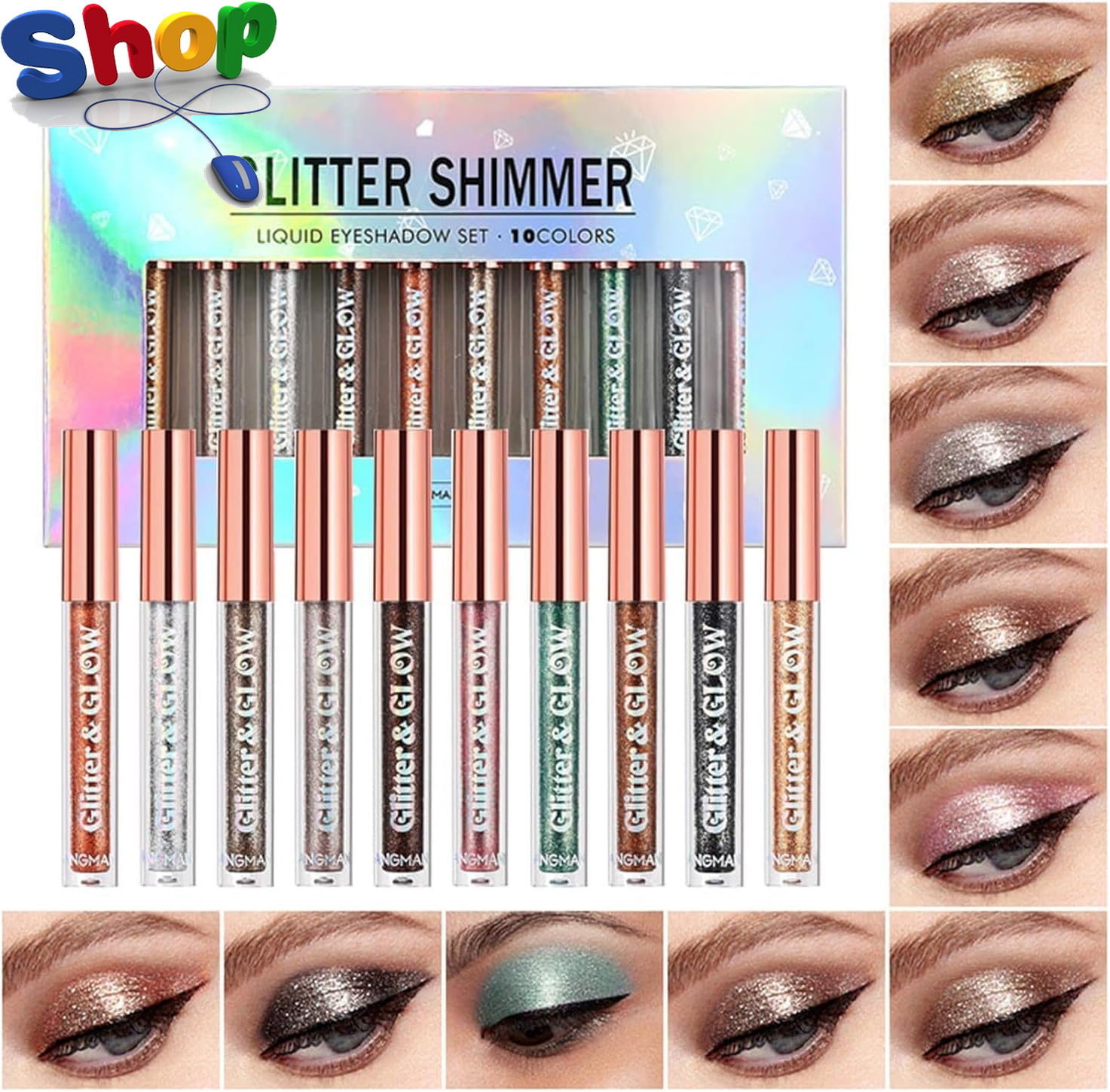 10 Colors Glitter Liquid Eyeshadow Set Metallic Glitter Shimmer Smokey Eye Looks