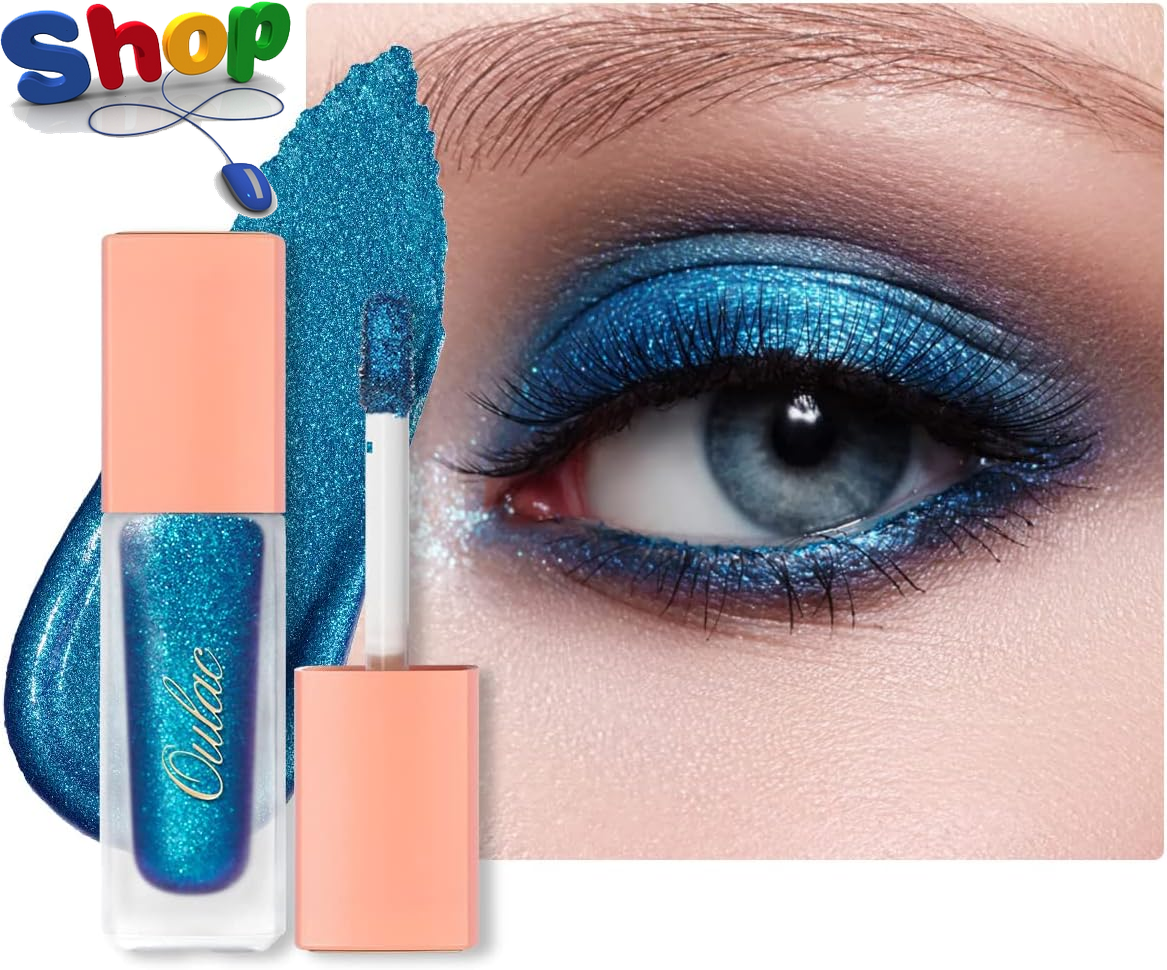 Oulac Liquid Glitter Eyeshadow - Metallic Blue Eyeshadow & Eyeliner, Blendable Eye Make-up, Crease Resistant, Vegan, 6.8g, Ocean Treasure (10)