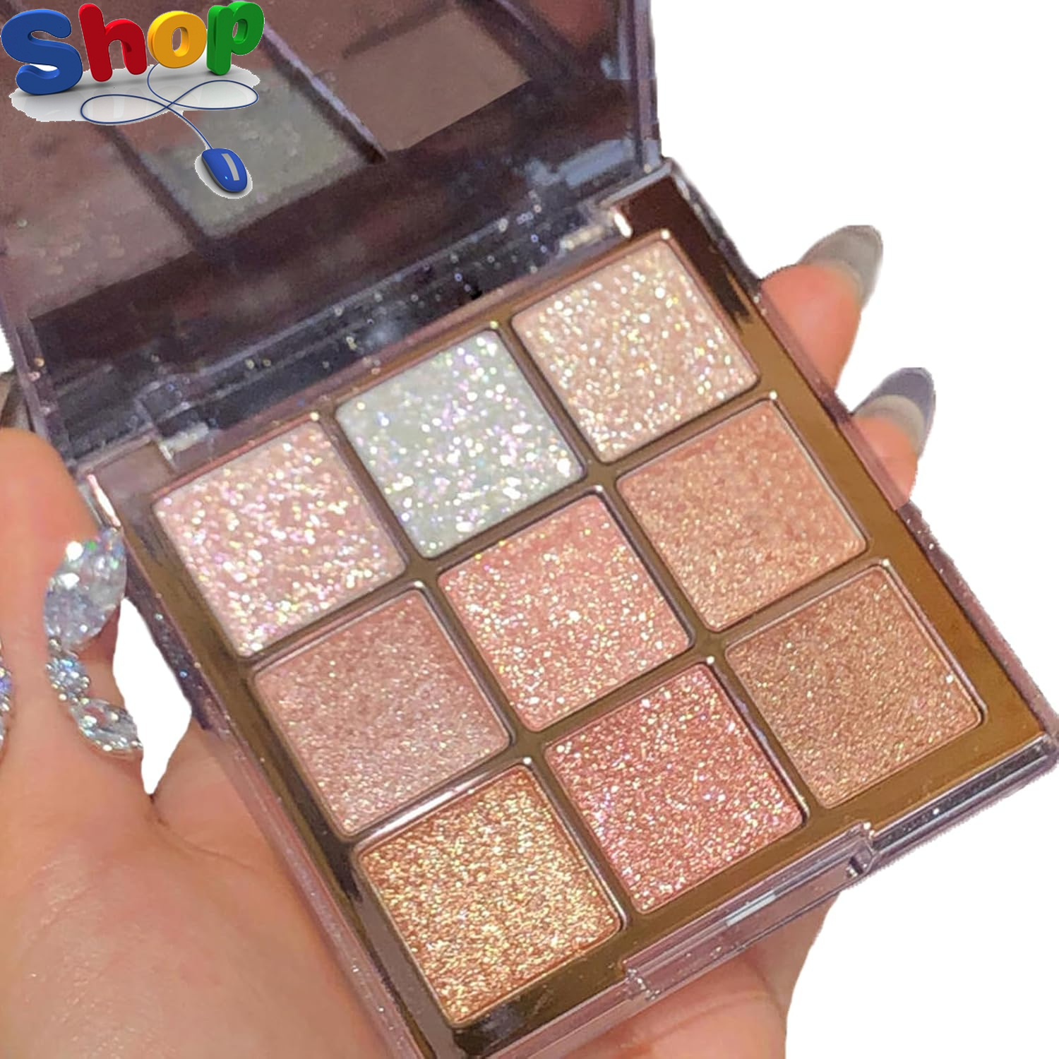 Glitter Eyeshadow Palette - Shimmer 9Colors Eye Shadow - Gold, White, Pink Eye M