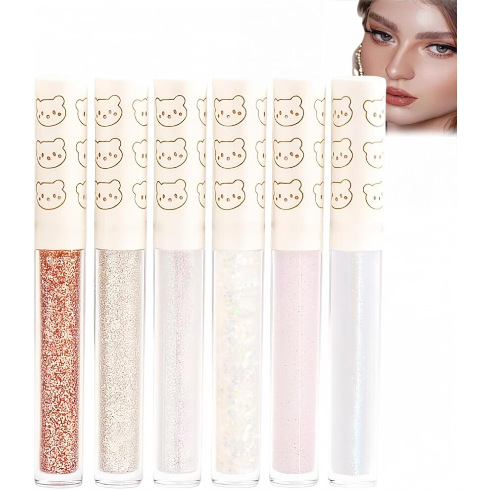 6Pcs Liquid Glitter Eyeshadow Eyeliner,Eye Glitter Liquid Eyeshadow Eyeliner Set,Glittery Korean Makeup Bling Under Eye Shadows,Long-Lasting,Quick-Dry