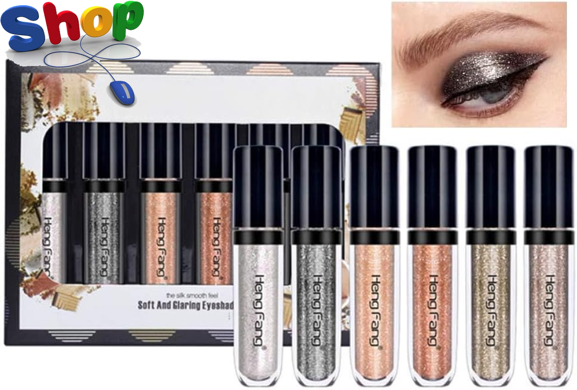 6 Pcs Liquid Glitter Eyeshadow Makeup Set Shimmer Metallic Eyeliner Eye Shadow L