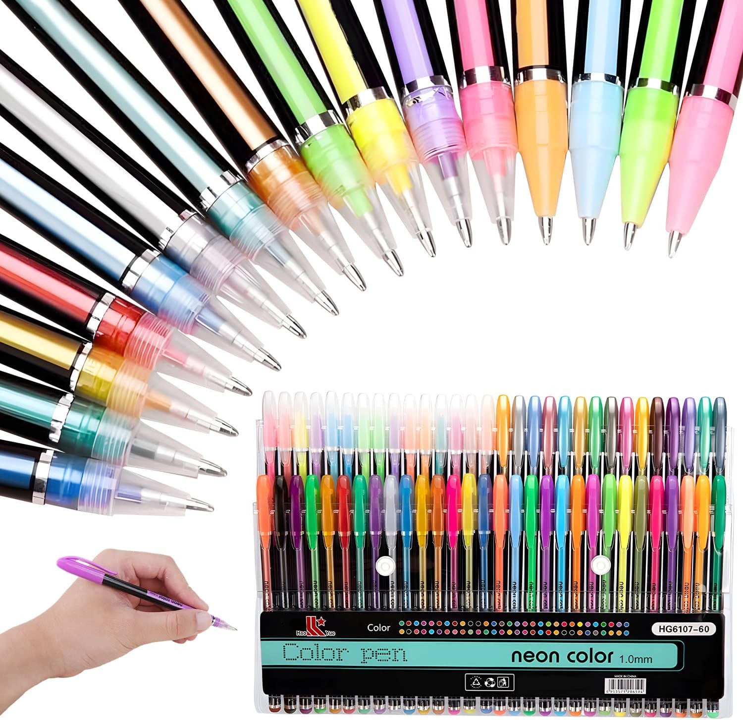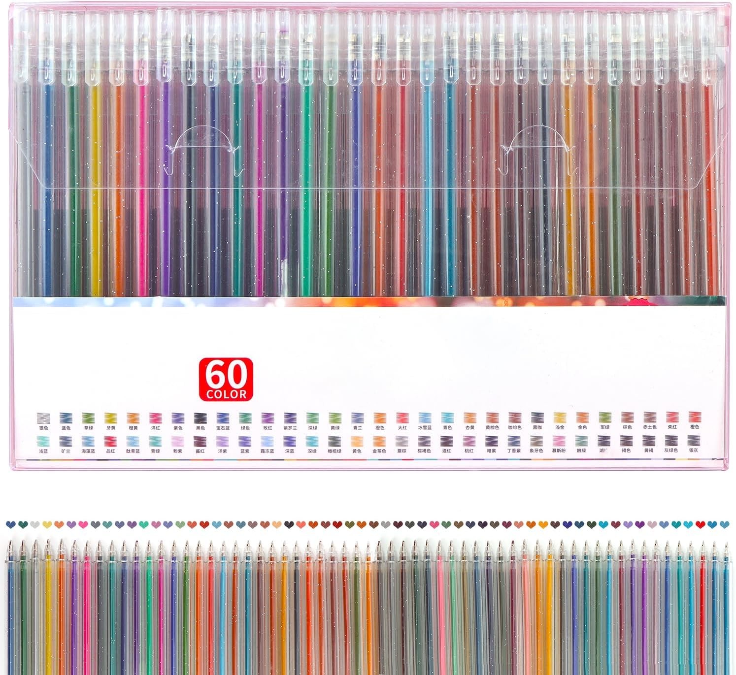 MOTIBACK 60 Pack Glitter Gel Pens Set, 60 Colors Sparkle Gel Pens for Adult Col