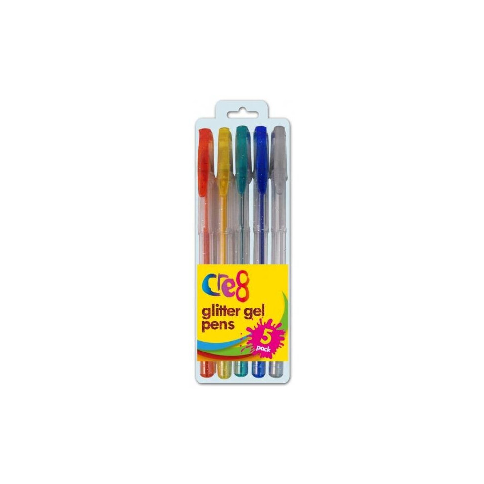 Glitter Gel Pens, 5 Colours - RED GREEN YELLOW SILVER & BLUE