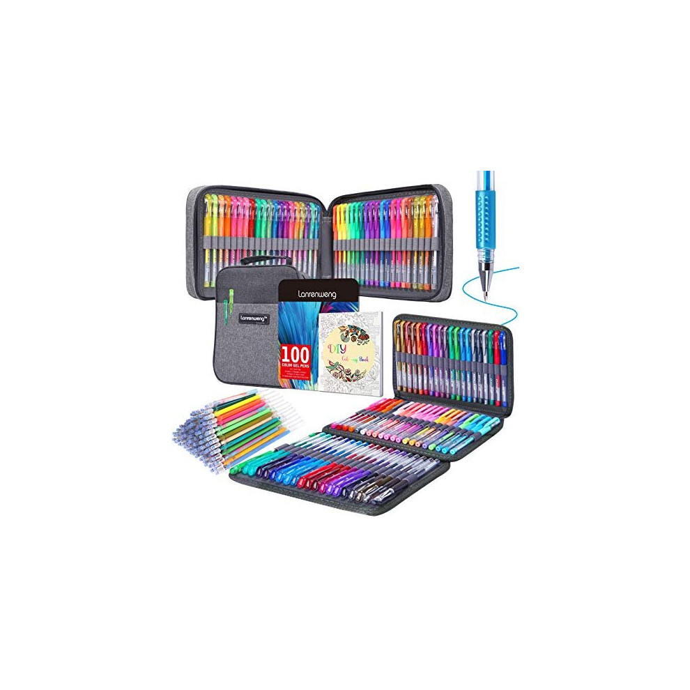 200 Pack Gel pens Set 100 Colored Gel Pen with 100 Refills, Fine Tip Glitter Gel pens with Canvas Bag for Adults Coloring Books Drawing Crafts Sc