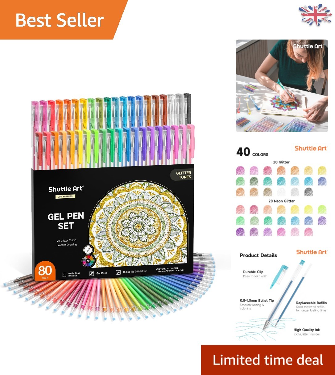 Glitter Gel Pens, Shuttle Art 80 Colours Gel Pens 40 Colours Glitter Gel Pen Set