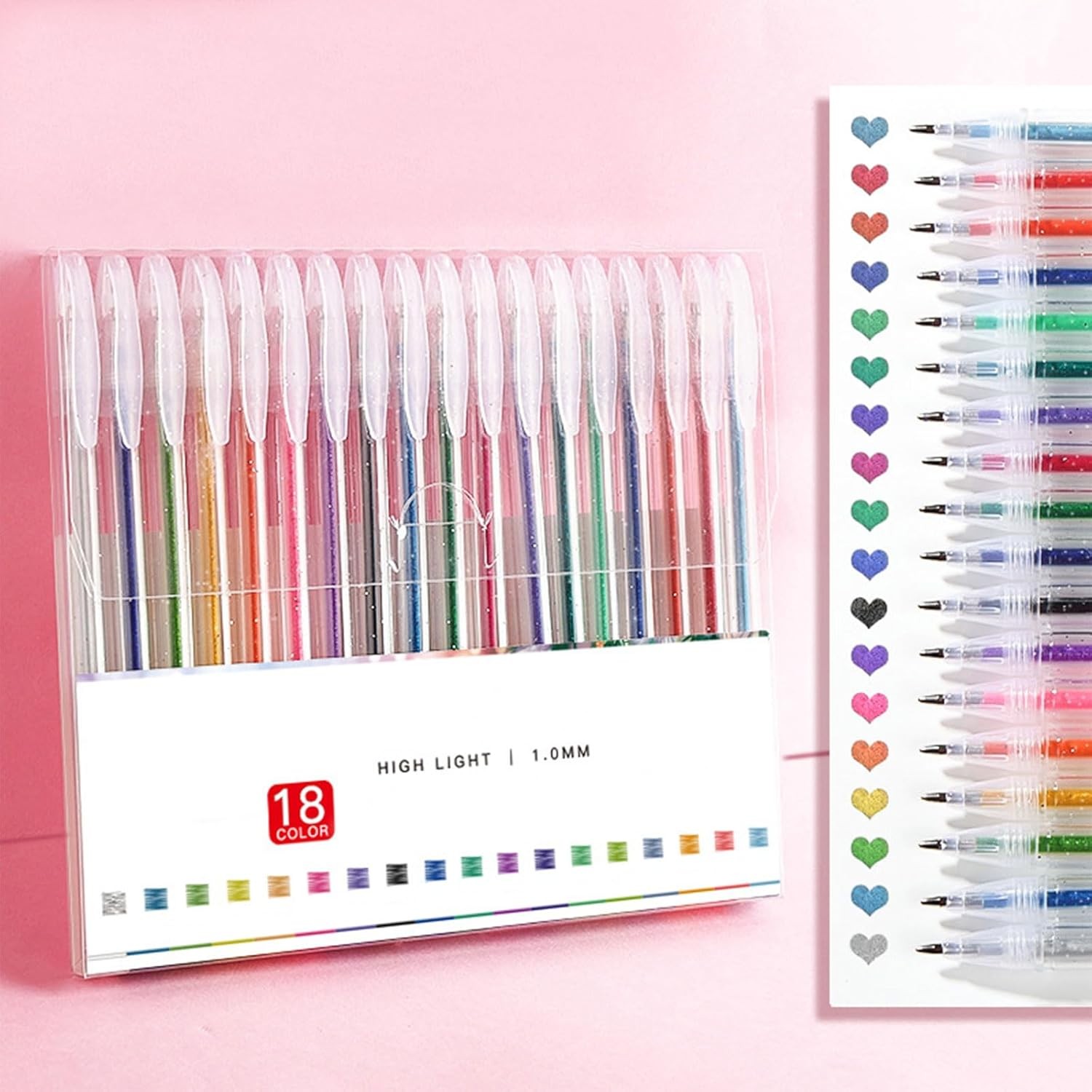 Glitter Gel Pens Set – 18-Colour Gel Pens for Colouring 1.0mm Tip– Gel Glit