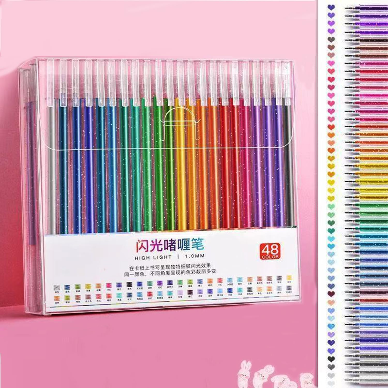 48Pcs Glitter Gel Pens Set, Colouring Writing Pens for Kids Adults, Sparkly Make