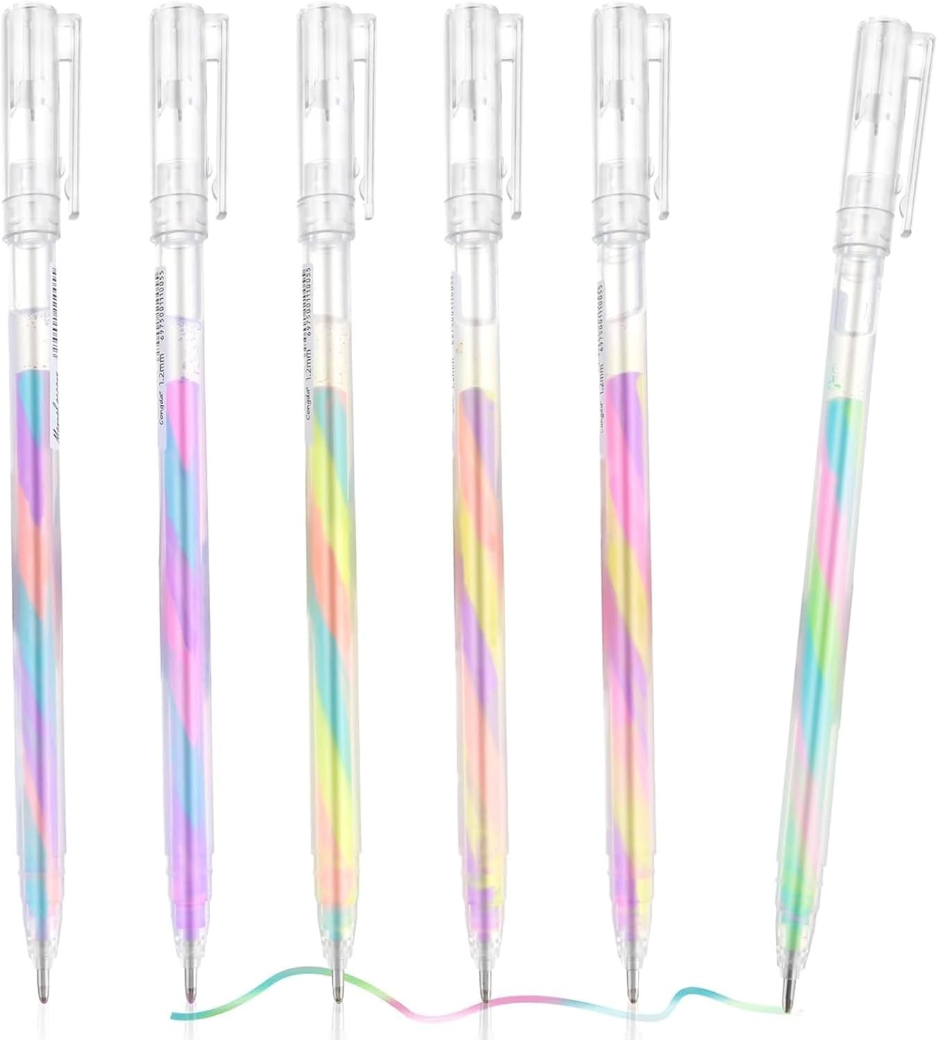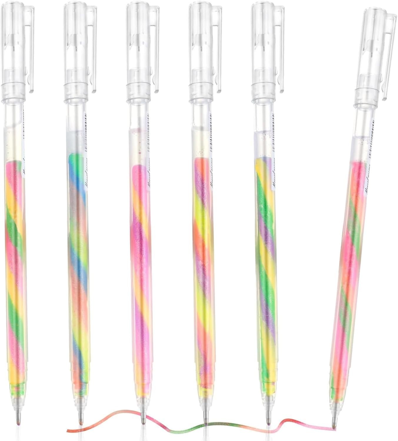 6 Pack Rainbow Glitter Gel Pens, Glitter Colouring Pens for Card Making, Drawin