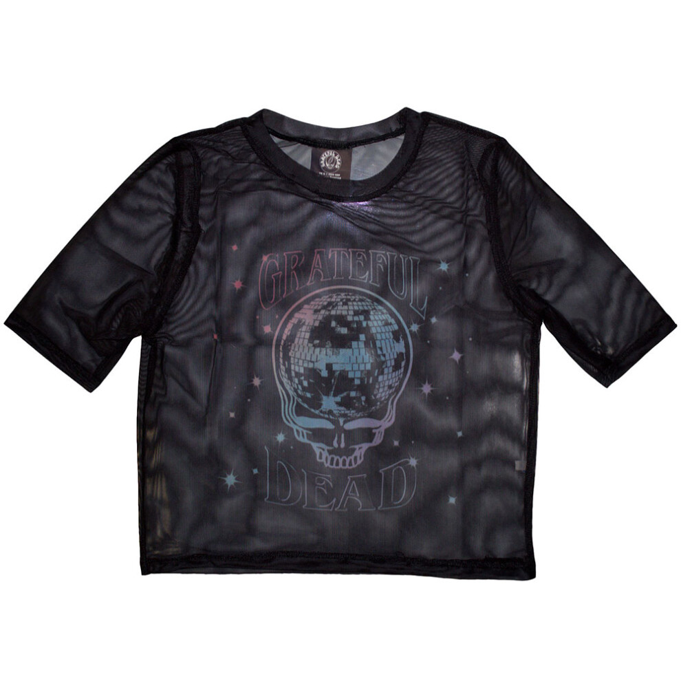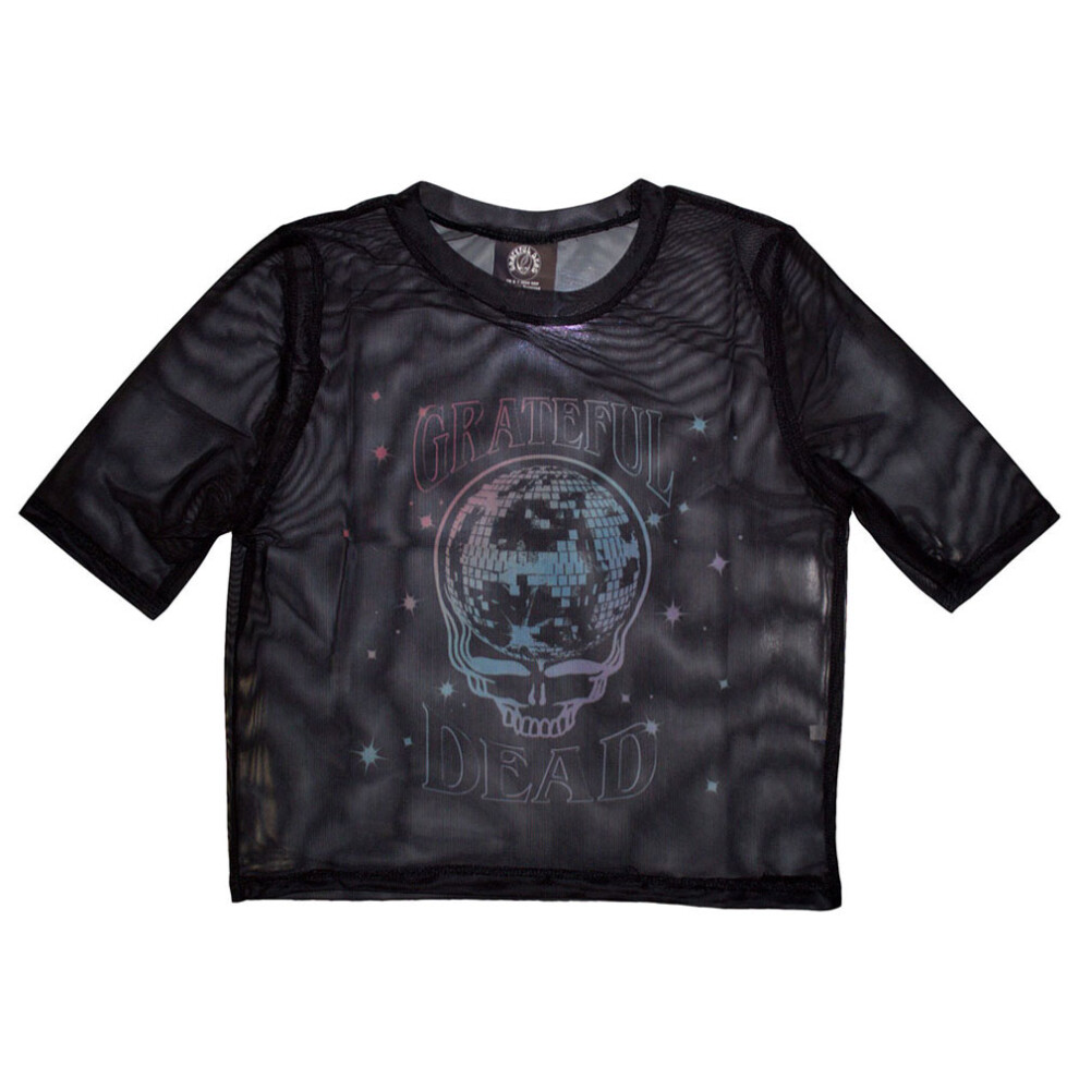 (XL, Black) Grateful Dead Stealy Glitter Ball Mesh Crop Top