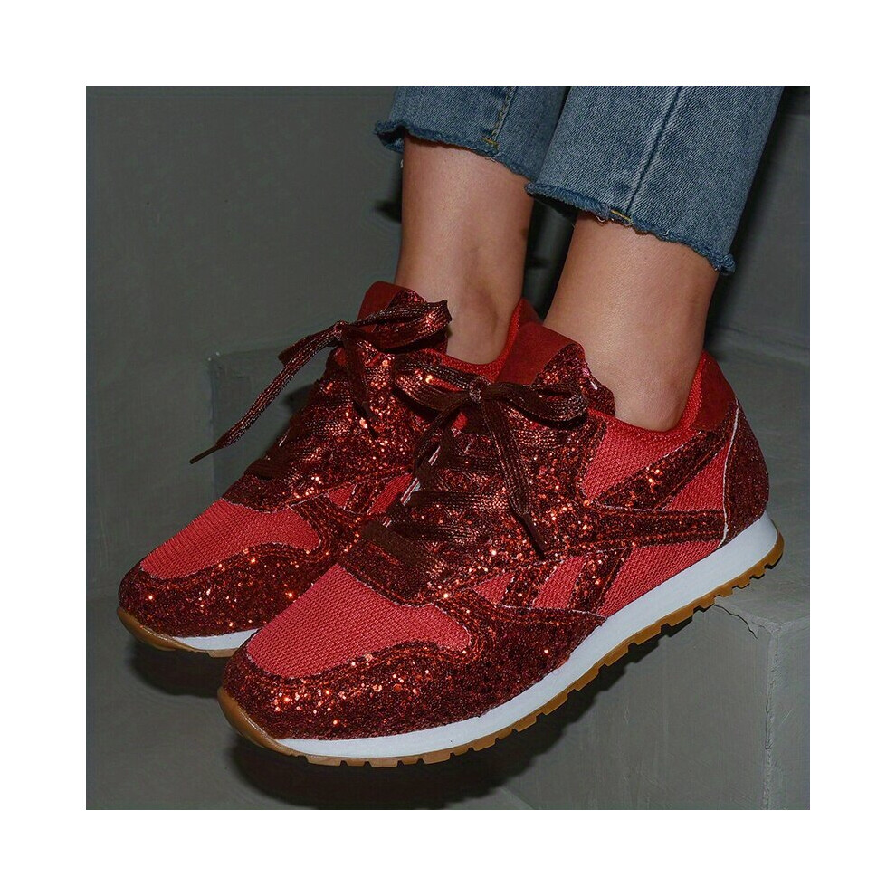 Womens Glitter Sequins Sports Shoes Mesh Lace Up Low Top Sneakers Versatile Walking Shoes