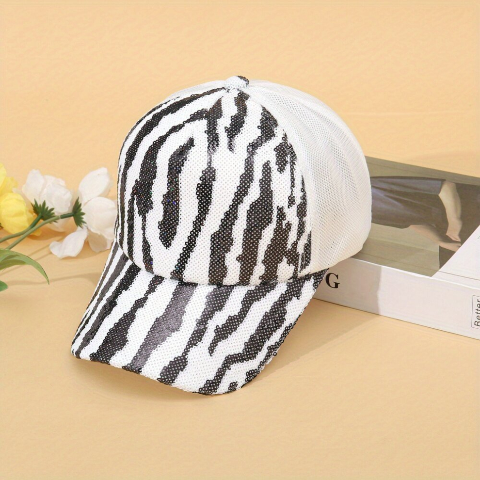 1pc Top Snake Pattern Glitter Mesh Breathable Sunshade Leisure Sports Duck Tongue Cap For Couple