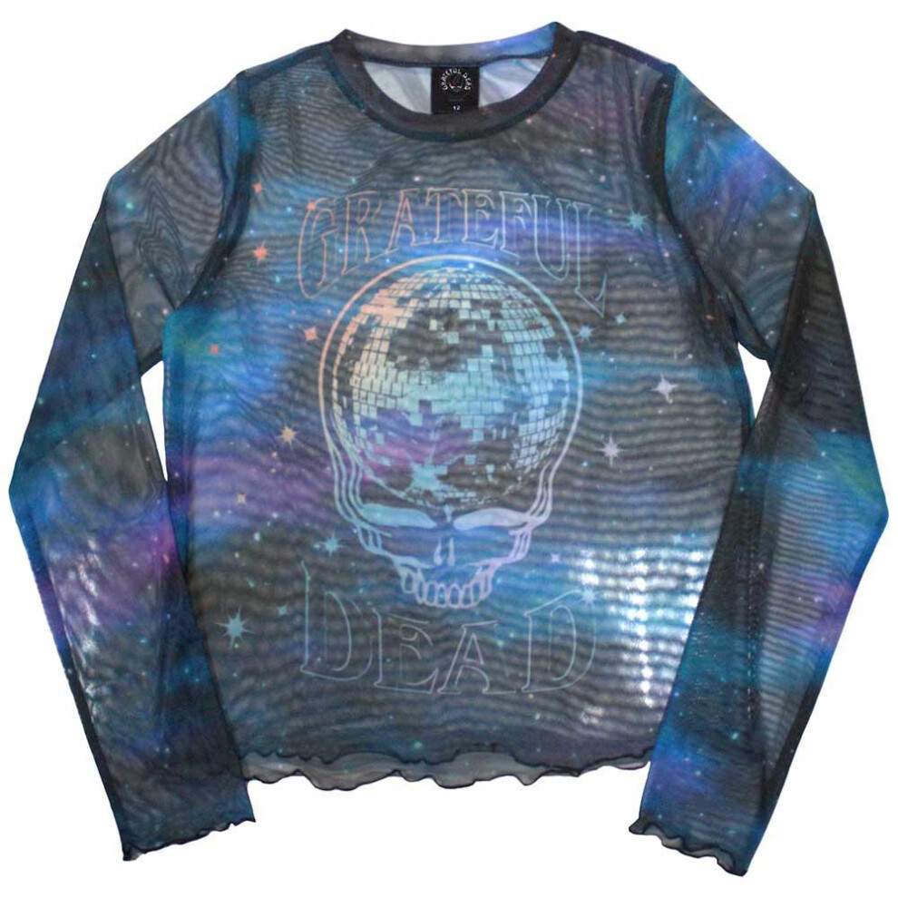 (XL, Blue) Grateful Dead Womens/Ladies Stealy Glitter Ball Mesh Long-Sleeved Crop Top