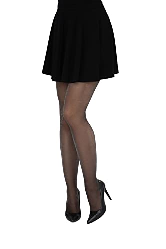 LORES Womens Glitter Tights Semi-transparent Shiny Hosiery Sparkly Sexy Lingerie Lurex Pantyhose, Nero Argento M