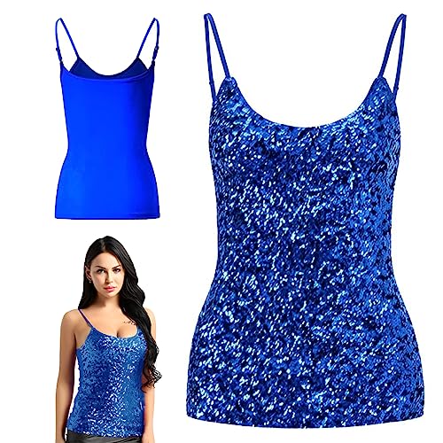 Women's Sequin Tops, Sleeveless Glitter Camisole Vest, Adjustable Straps Daily Halter Tank Tops Blouse Tshirts for Night Club Party Performance Costume Blue