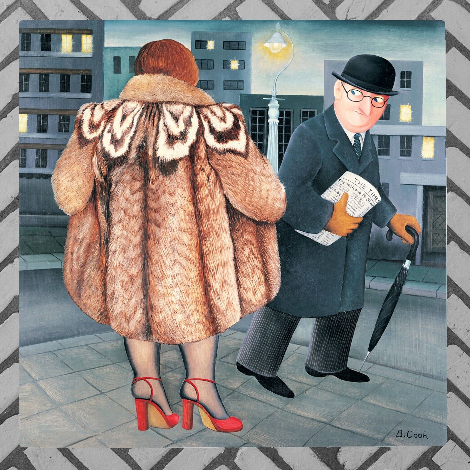 My Fur Coat Tile Picture Plaque Sign Fun Novelty Artwork By Beryl Cook 20x20cm