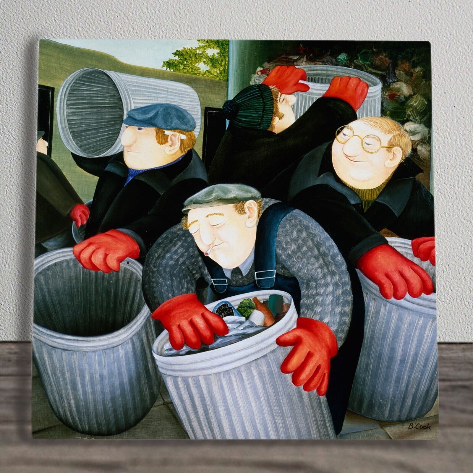 Dustbin Men Tile Plaque Sign Wall Art UV Printed By Beryl Cook 20x20cm