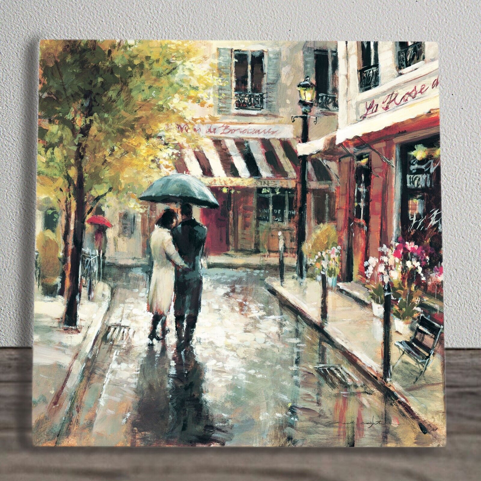 Romantic Stroll Tile Plaque Sign Wall Art Paris Scene Brent Heighton 20x20cm
