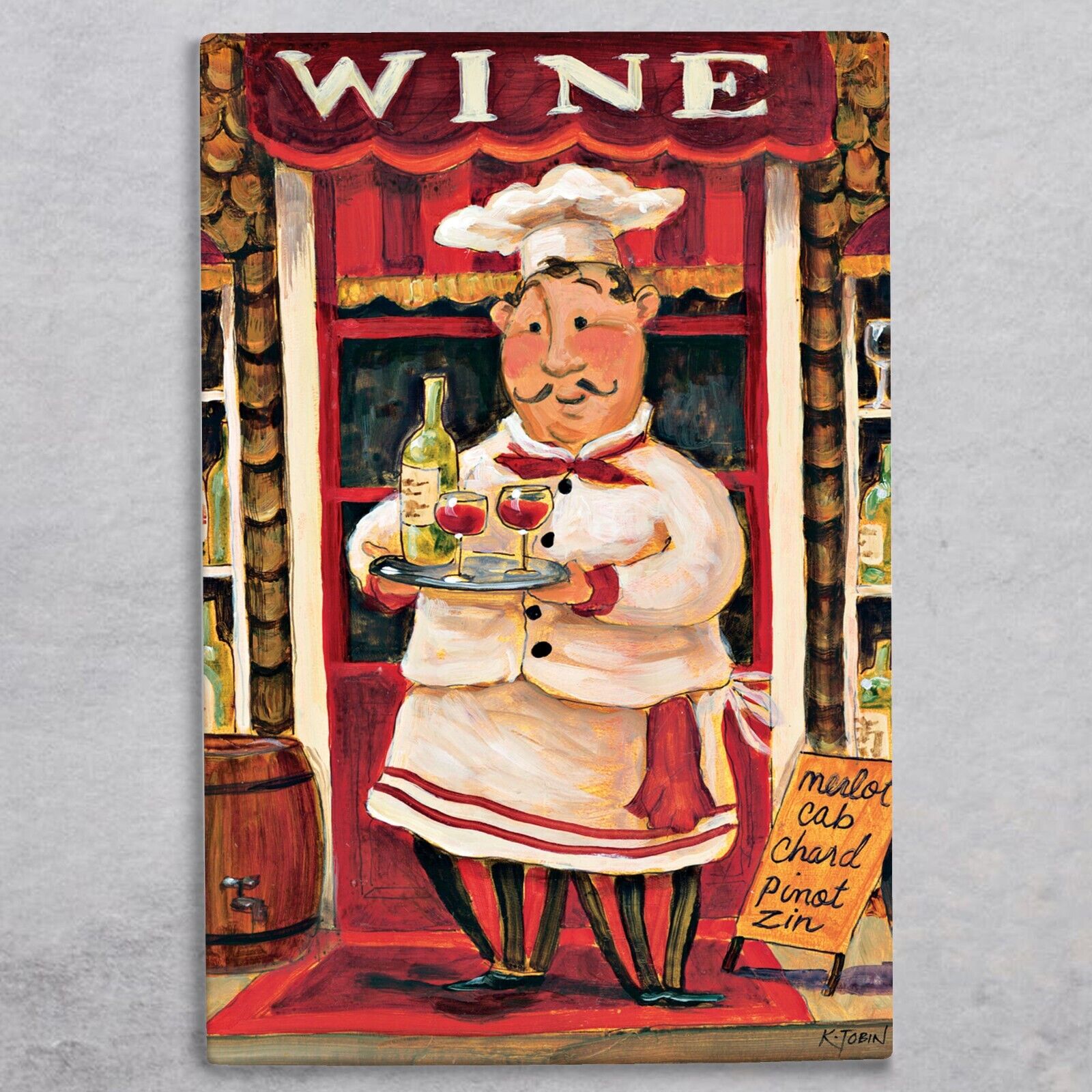 Wine Chef Ceramic Tile Picture Novelty Plaque Sign Wall Art By K Grant 30x20cm