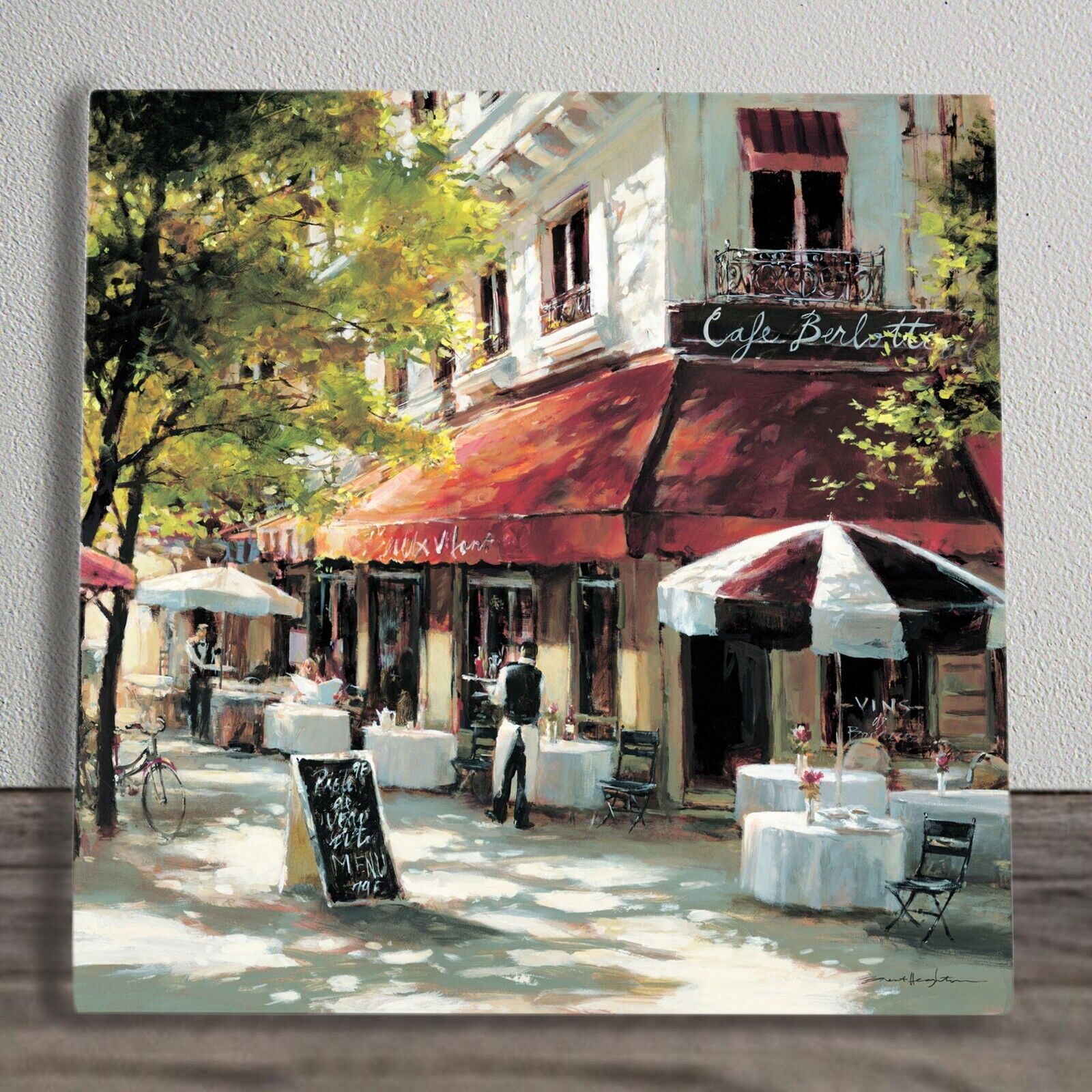 Cafe Berlotti Tile Plaque Sign Wall Art Paris Scene By Brent Heighton 20x20cm