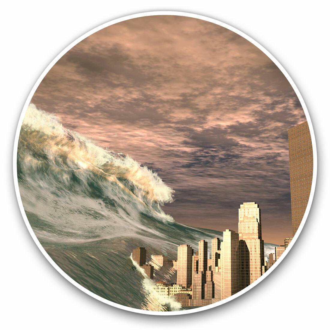 2 x Vinyl Stickers 20cm - Tsunami Sweeping City Global Warming Cool Gift #16698
