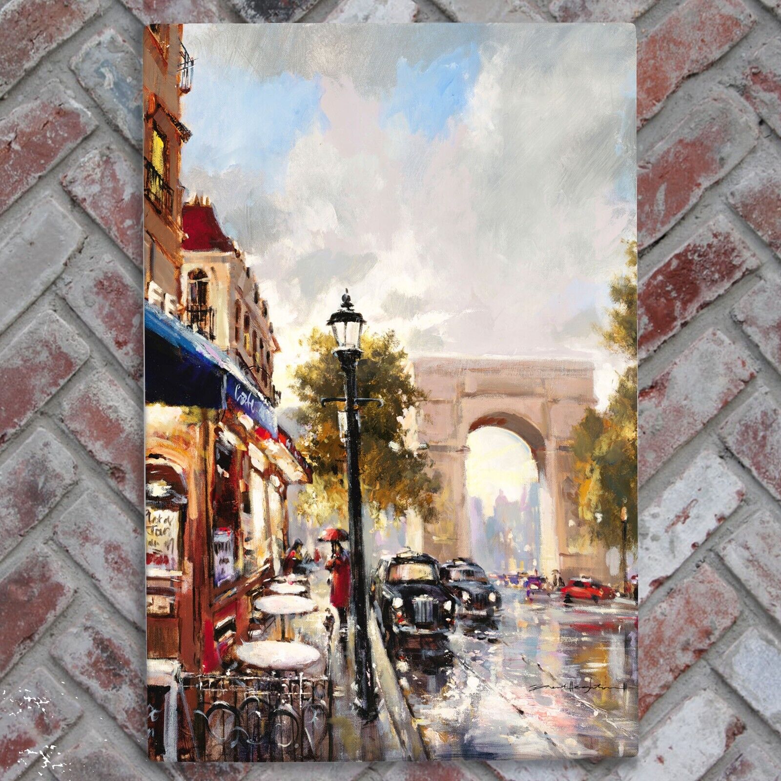 Champs Elysees 2 Tile Plaque Sign Wall Art Paris Scene Brent Heighton 30x 20cm