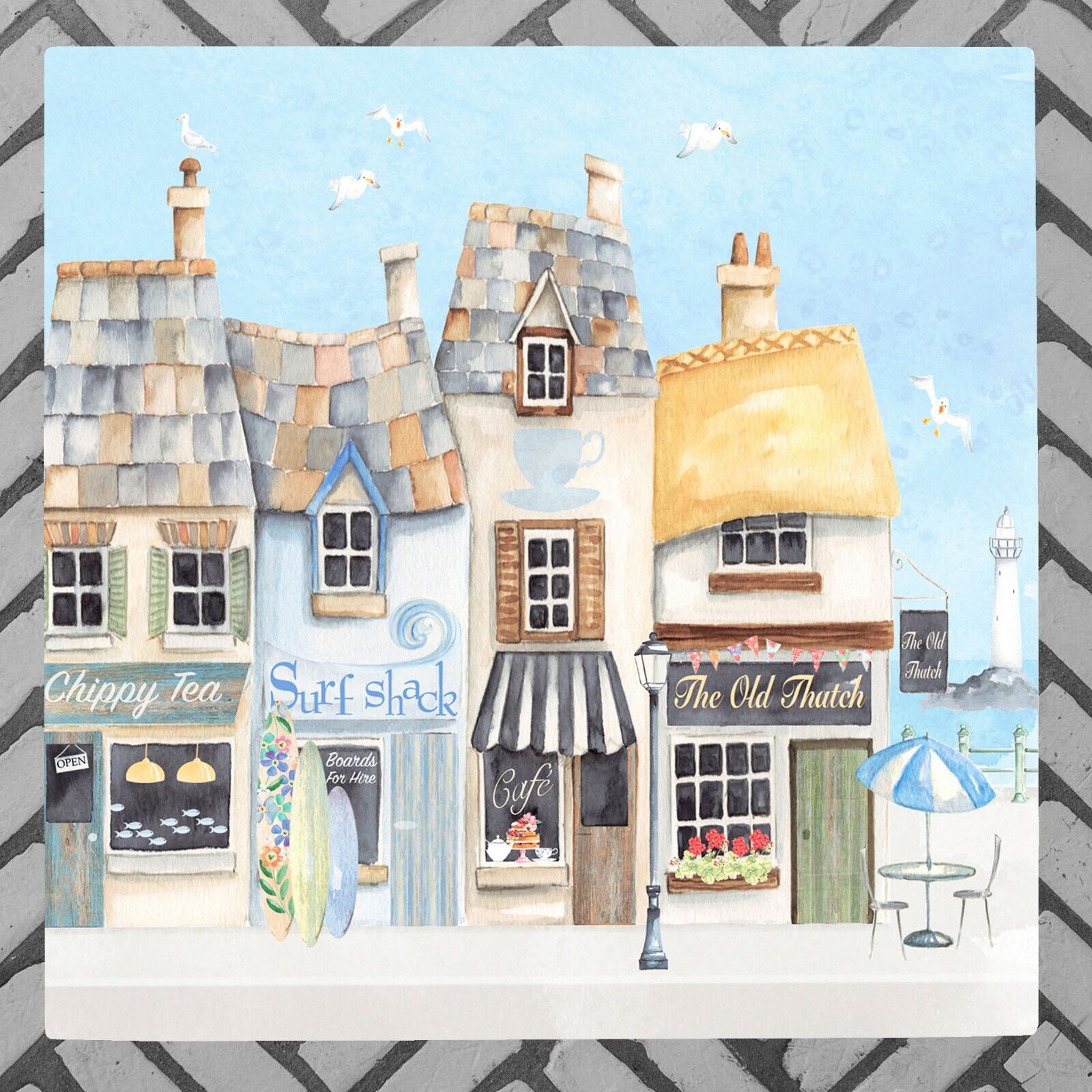 Seaside Café Tile Plaque Sign Wall Art Nautical Scene By Brent Heighton 30x20cm