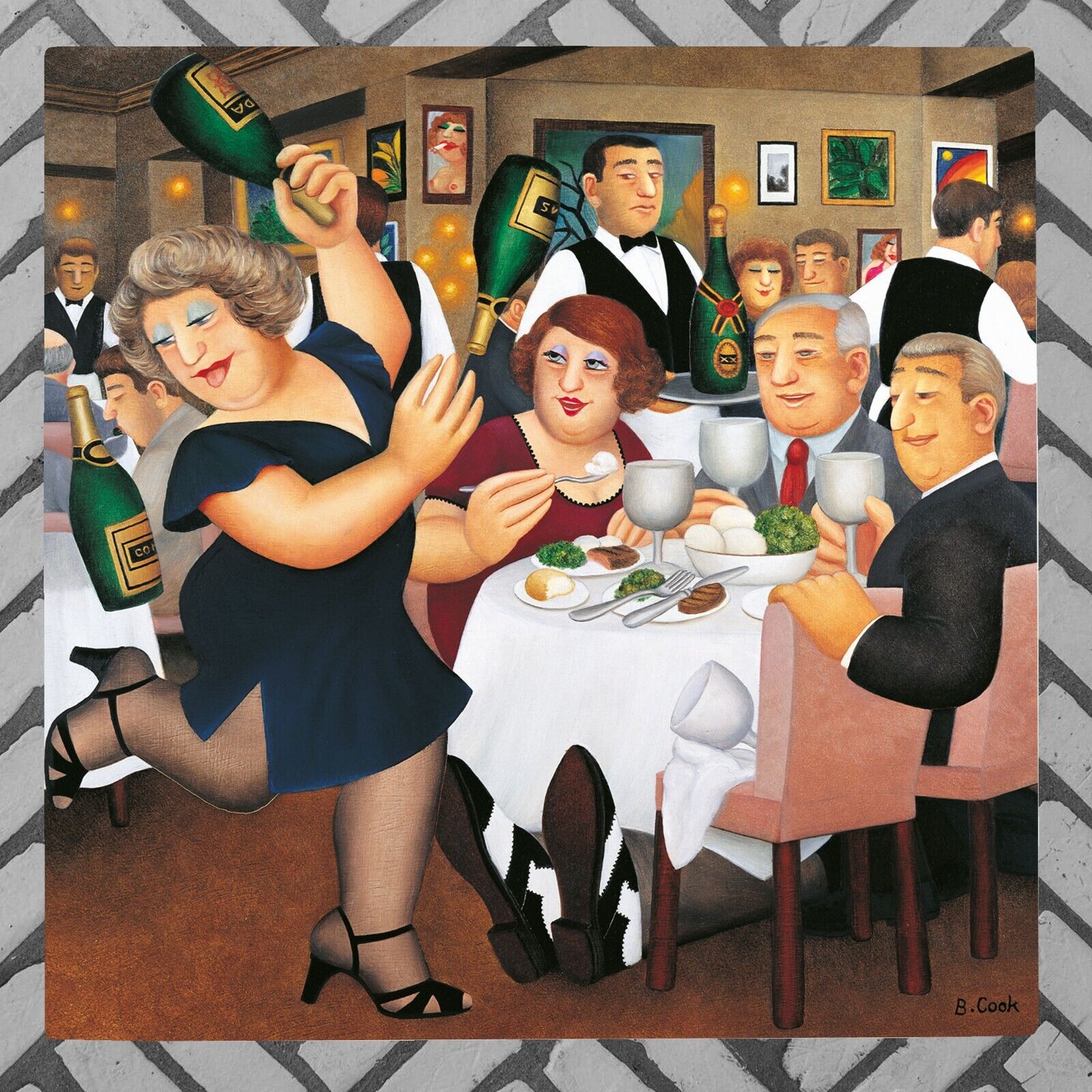 Dining Out Tile Plaque Sign Wall Art Restaurant UV Printed By Beryl Cook 20x20cm