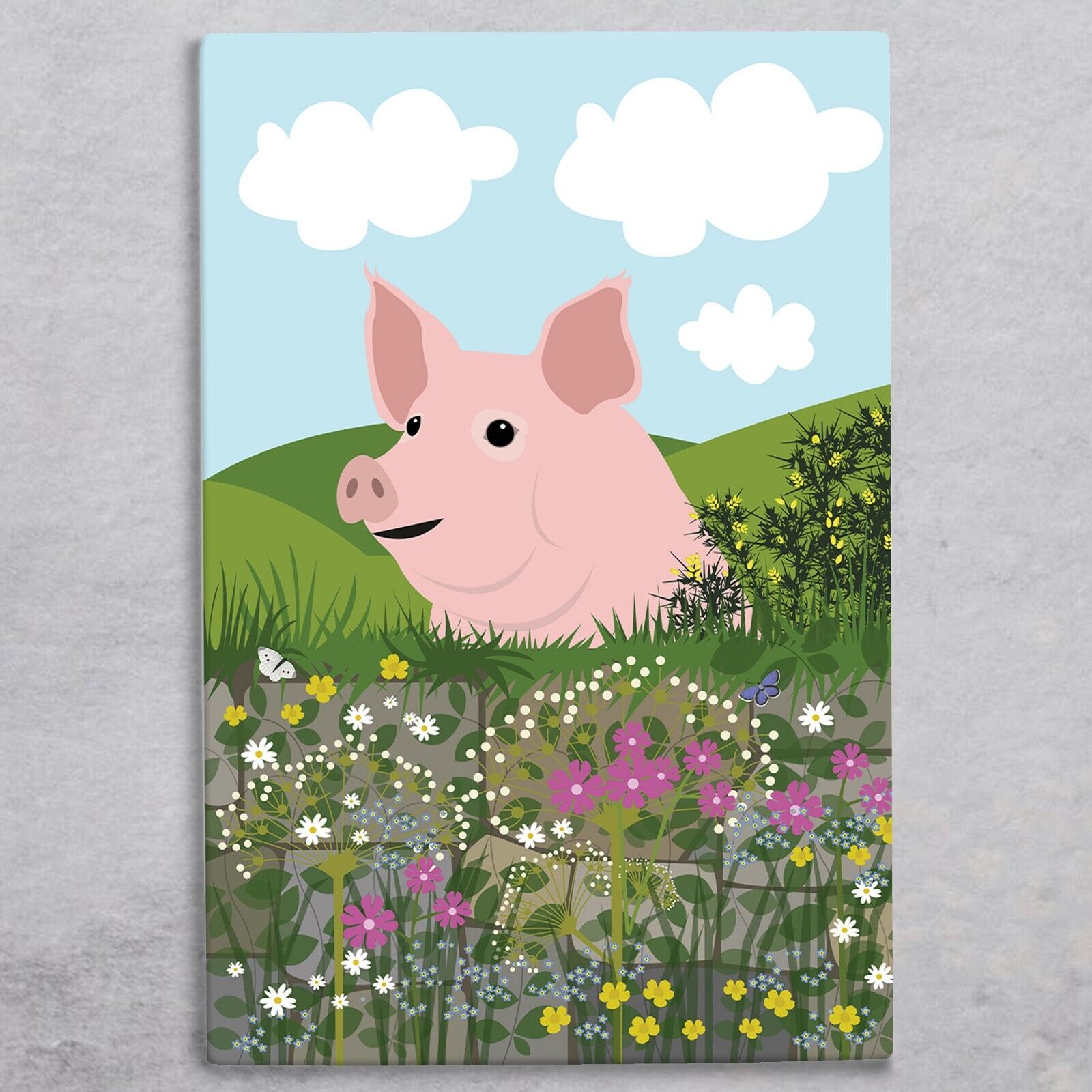Tile Picture Pig Ceramic Plaque Sign Farm Decor Wall Art Kate Pearson 30x20cm