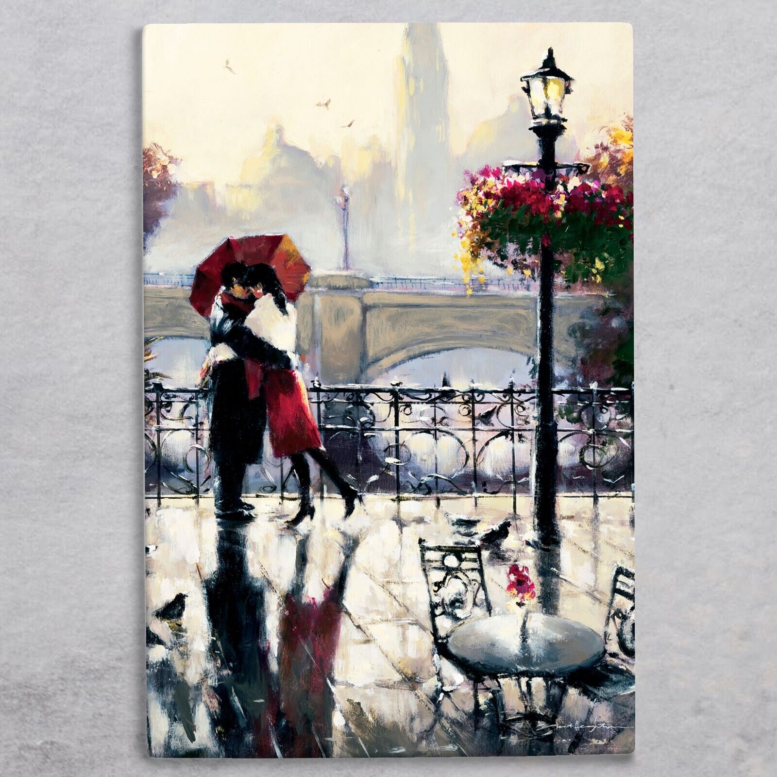 Embrace Tile Plaque Sign Wall Art Romantic Paris Scene Brent Heighton 30x 20cm