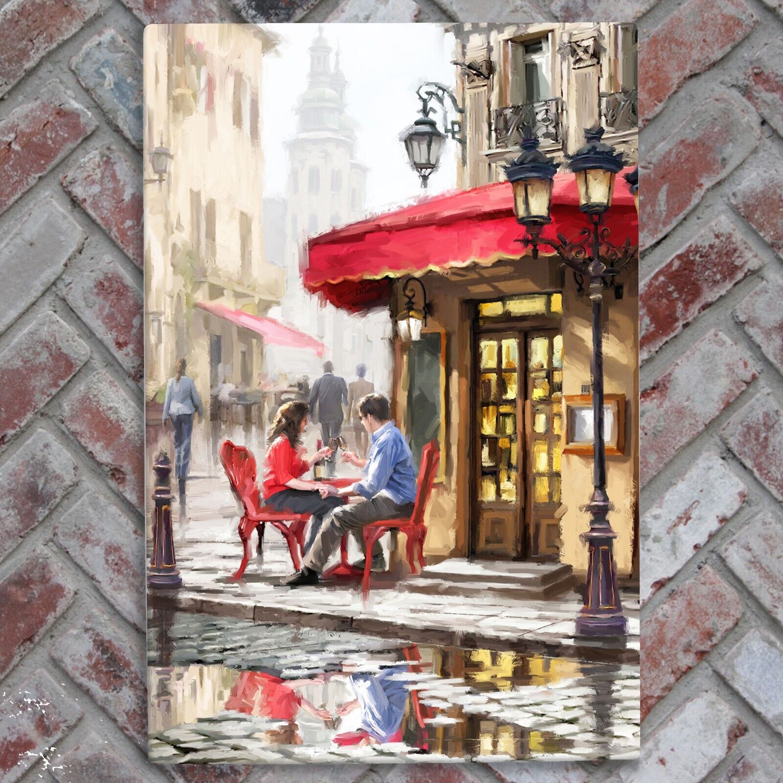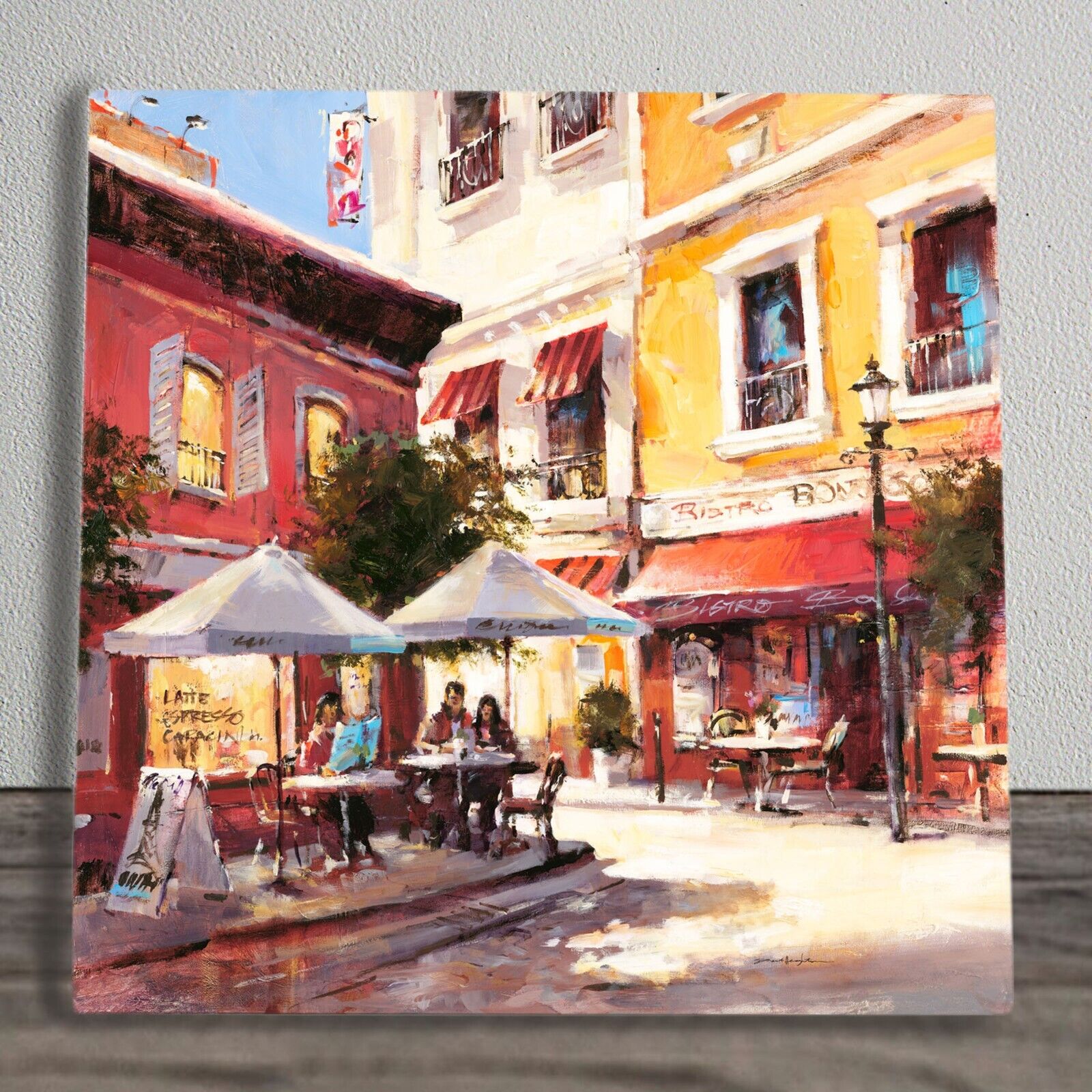 Cafe Break Tile Plaque Sign Wall Art Paris Scene Brent Heighton 20x20cm